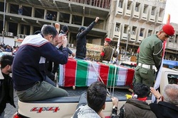 The convoy snaked its way through a sea of black-clad mourners, some of whom carried portraits of Iran's Leader of the Islamic Revolution Ayatollah Seyyed Ali Khamenei.