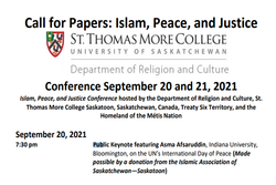 According to the organizers, “in order to help animate interest in Islamic Studies in Saskatchewan, the Department of Religion and Culture at St. Thomas More College welcomes abstract submissions for our upcoming conference examining issues at the intersections of Islamic traditions, peace, and social justice. This conference will bring together scholars working in both specific academic fields and across disciplinary boundaries.
