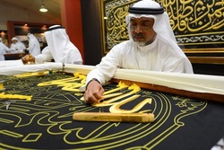 Artisans at the Kiswah Factory are entitled with the embroidery of the belt, lamps and the curtain that drapes over the Kaaba door, in addition to the Quranic verses printed on the black cloth and other embellishments. They employ the necessary techniques, including stitching and padding and use silver- and gold-coated wires. This process consumes approximately 150 kilograms of gold and silver wire.