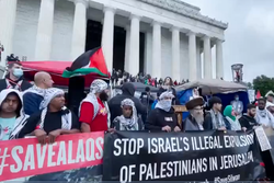For the thousands gathered here outside the Lincoln Memorial for the National March for Palestine in Washington, DC, it’s simply not enough that the US government ends support for the Israelis, they want them to go a step further, and introduce measures to sanction the illegitimate apartheid regime.