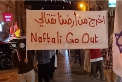 They set the Israeli flag on fire during the fresh protests against a two-day visit by the Tel Aviv regime's prime minister Naftali Bennett to the tiny Persian Gulf island.