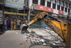 Shop owners searched through the rubble of their shops afterward to collect their belongings. But for nearly an hour after the Supreme Court order, officials continued to demolish structures, including the outer entrance and stairs leading into a mosque. They stopped the bulldozers just outside the entrance of a Hindu temple, about 50 meters (160 feet) from the mosque, and began to retreat, spurring outrage from Muslim residents who said they were being targeted.
