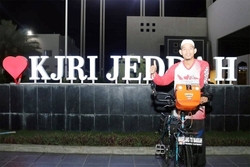 It took one week to reach Mecca from Riyadh, cycling nearly 900 km and from there cycled to Jeddah and visited the Indonesian Consulate General where he was welcomed by Indonesian Consul General Eko Hartono and other consulate officials.