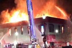 Surveillance video shows a female suspect, identified as 57-year-old Suzette Thompson of Thief River Falls, using a spray can and a lighter to set a curtain within the building a blaze before quickly leaving the scene.