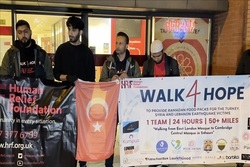 The group started the walk from outside the East London Mosque and will collect donations during the journey on behalf of the Human Relief Foundation (HRF) which will distribute Ramadan packages to the earthquake victims in Turkey, Syria, and Lebanon.