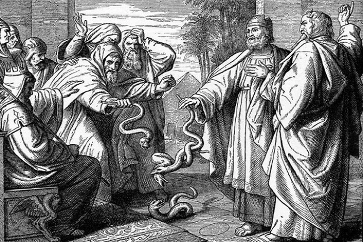 He immediately threw down his staff and suddenly it turned into a real serpent, devouring all the other supposed snakes.