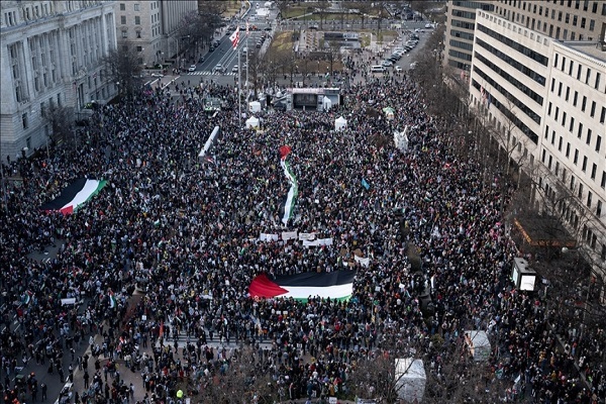 Tens of thousands of people gathered Saturday in Washington DC for a march and rally to demand a ceasefire in the Gaza Strip and an end to US military aid to Israel.