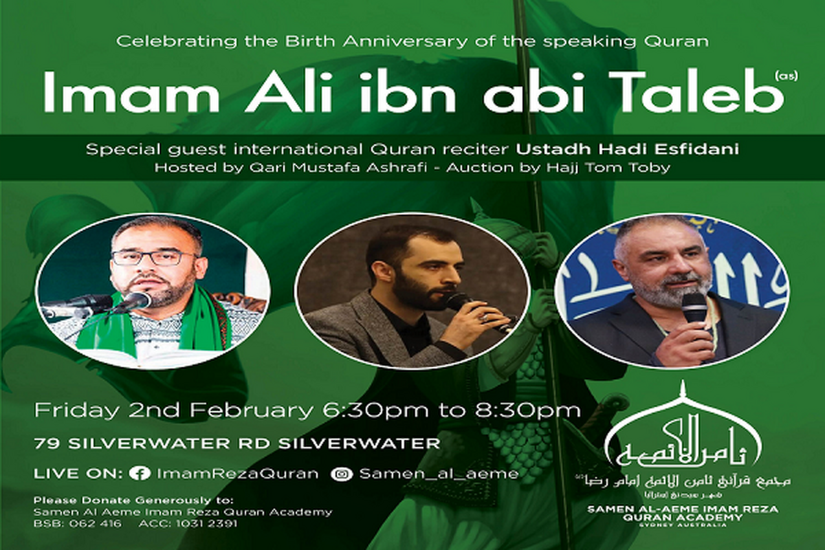 The Samen Al-Aeme Imam Reza Quran Academy in Sydney will organize the event after Maghrib and Isha prayers this Friday.