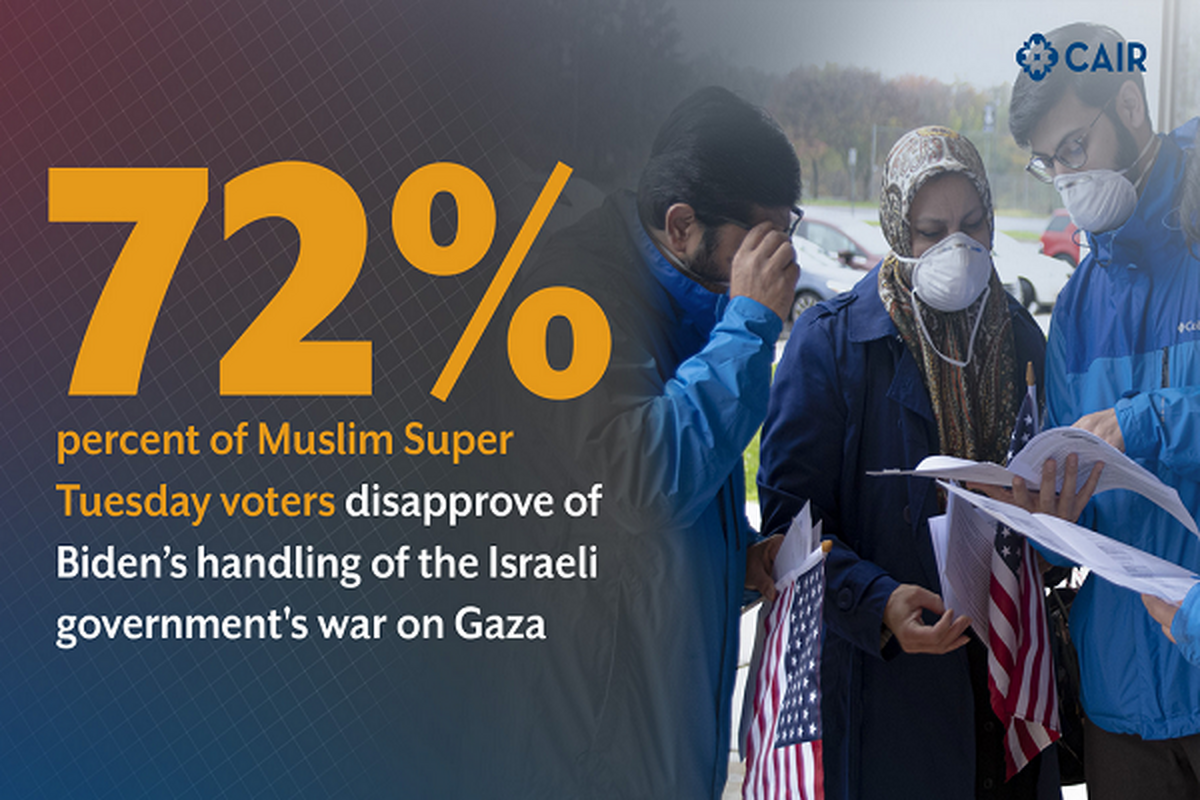 Last week, a CAIR and CAIR-Michigan exit poll of 527 Muslim voters who participated in Michigan’s presidential primary election found that 94 percent of American Muslims who voted in the Democratic primary voted “uncommitted.”