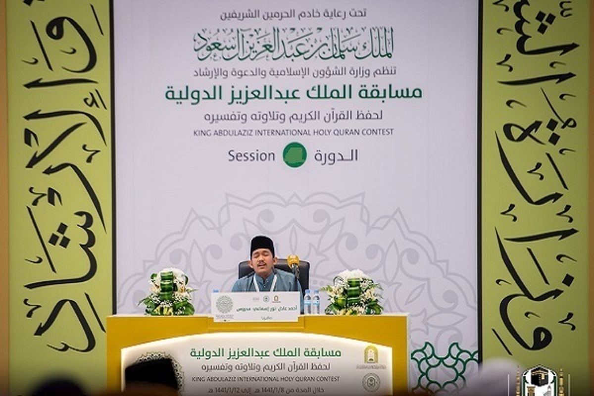 A contestant in a previous edition of the King Abdulaziz International Competition for the Memorization, Recitation and Interpretation of the Holy Quran (held in 2019)