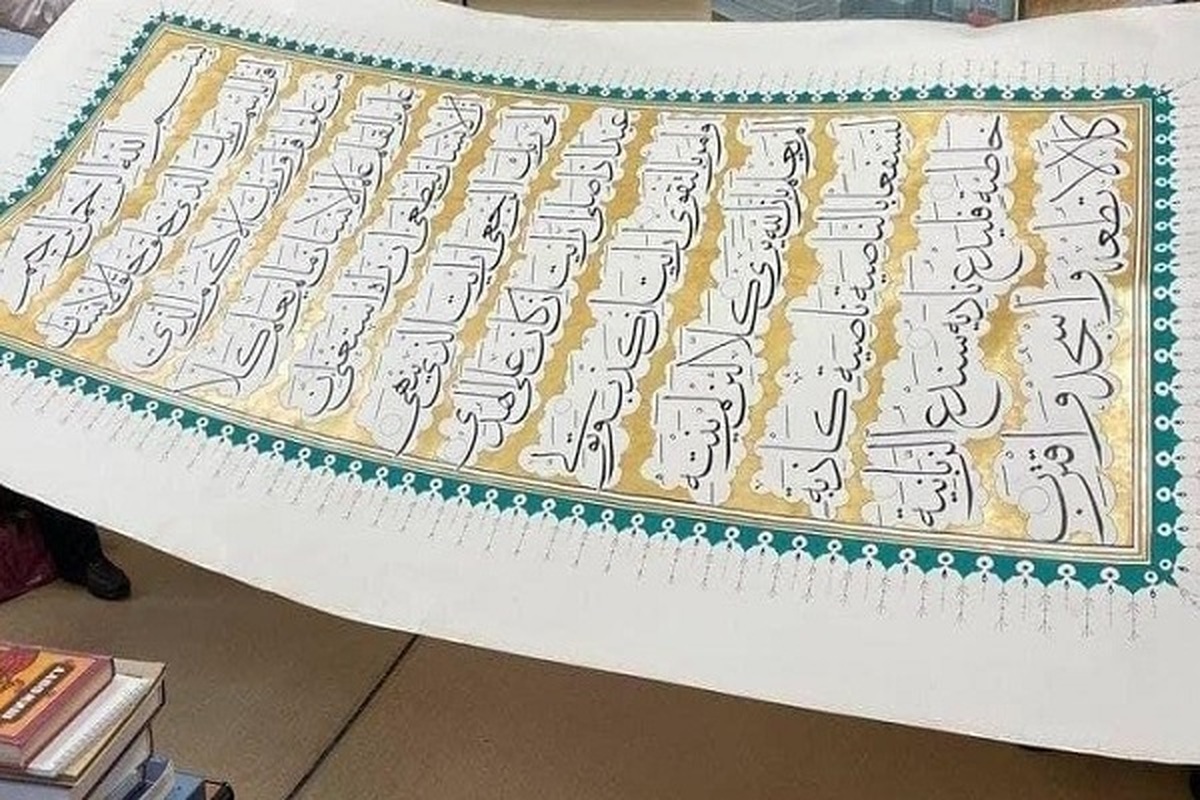 Pir Imtiaz Haider Shah Noorani Mujadadi, the calligrapher, shared that it took 425 days to complete the manuscript and three months to assemble it.