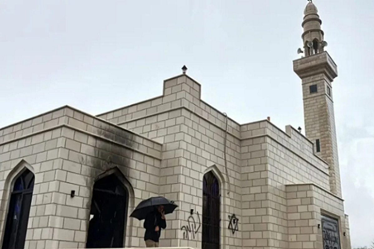 A group of illegal settlers reportedly entered a neighborhood near Salfit and set fire to the mosque while also spray-painting racist slogans on its walls.