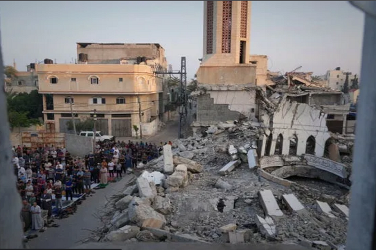 With much of Gaza in rubble, men and children were forced to hold the traditional Eid al-Adha prayers in the open air and with food supplies dwindling, families were having to make do with what they could scrape together for the three-day feast.
