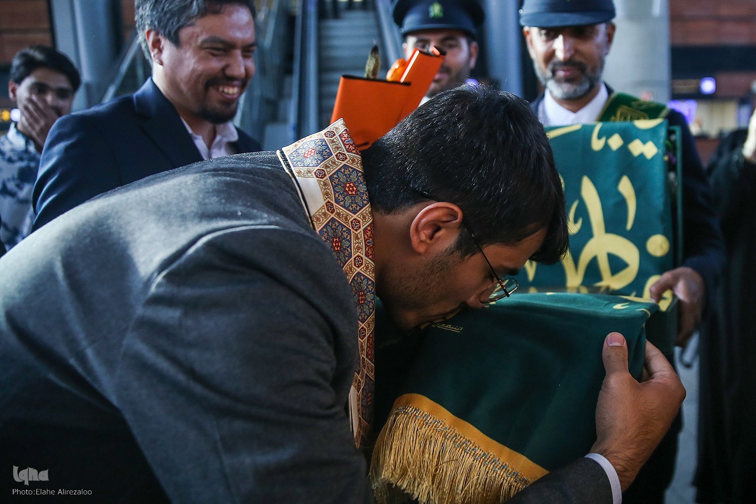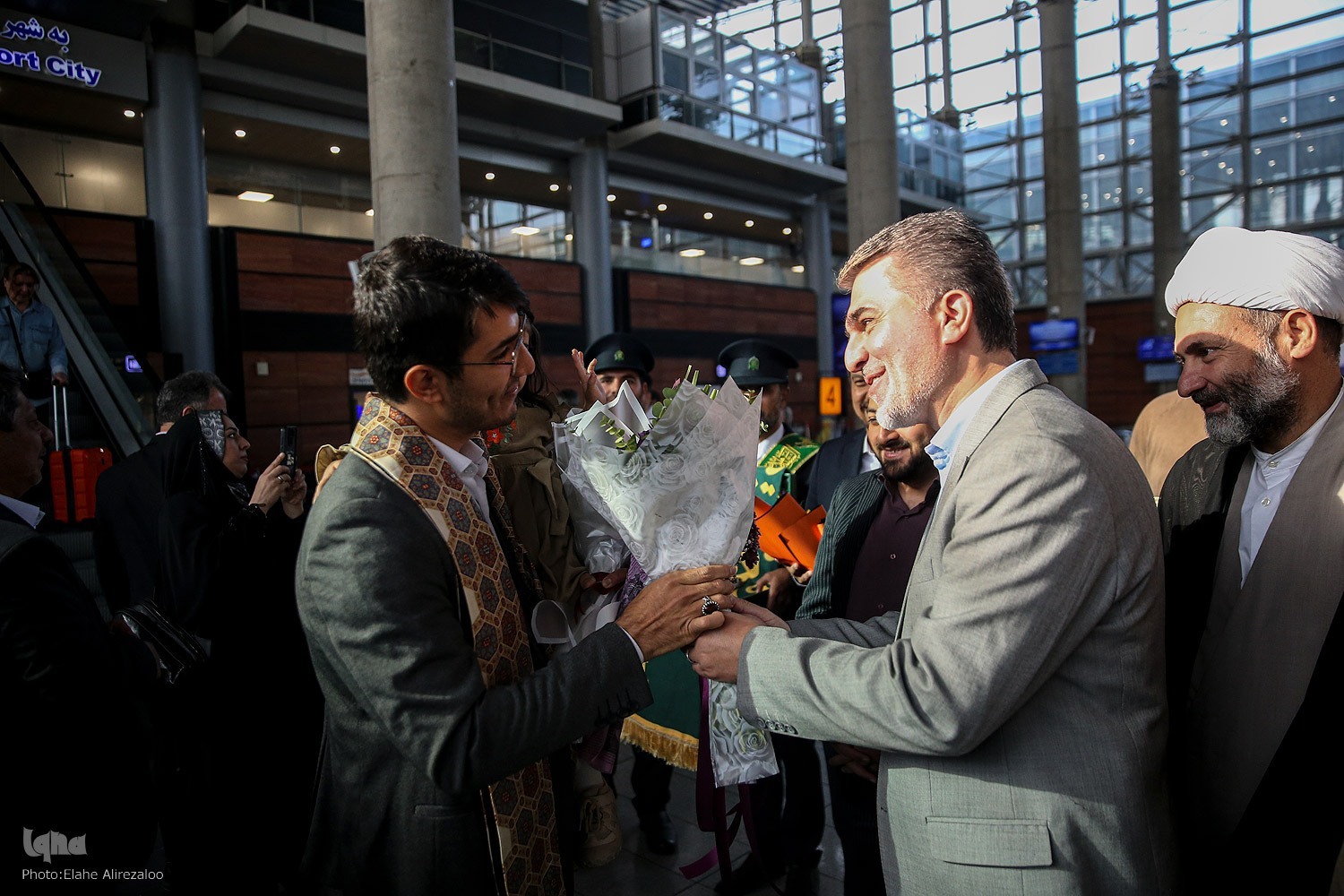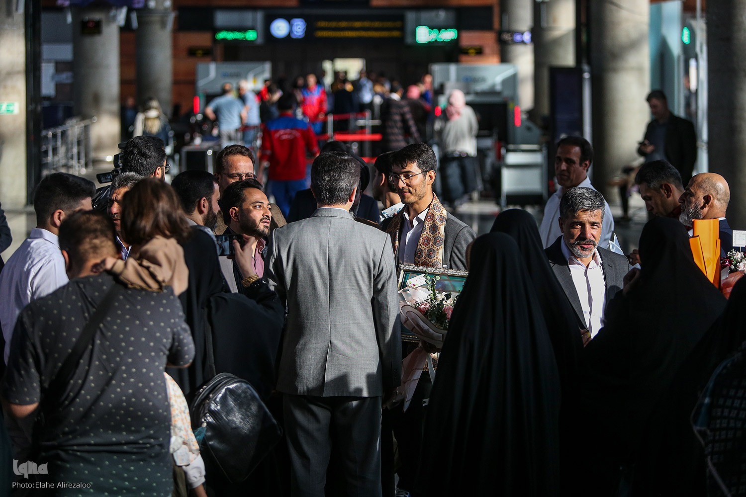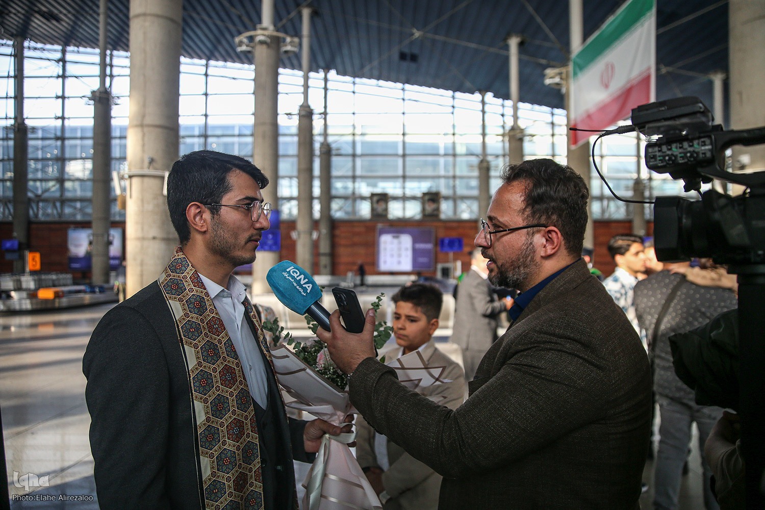 IQNA – With bouquets, embraces, and congratulatory messages, Iranian Quran reciters and cultural officials welcomed Es’haq Abdollahi at Imam Khomeini Airport on October 21, 2025, following his first-place win in 23rd Moscow International Quran Competition.