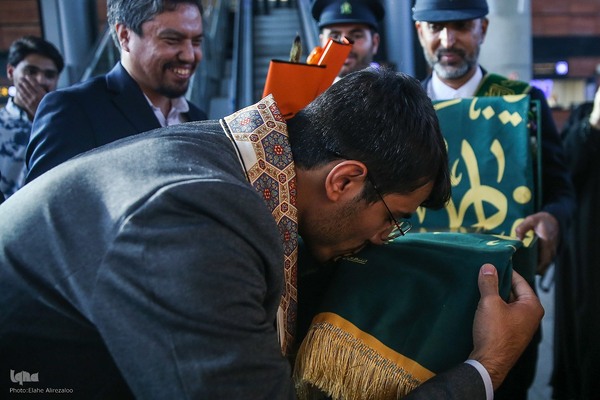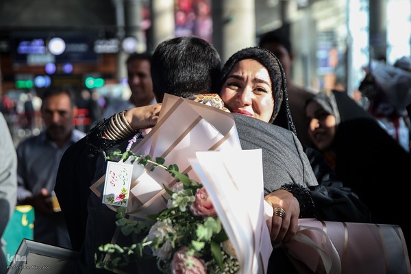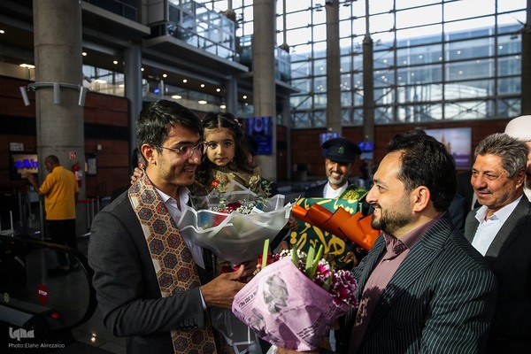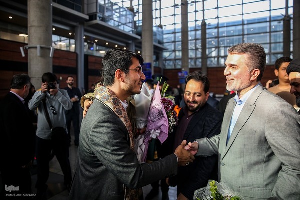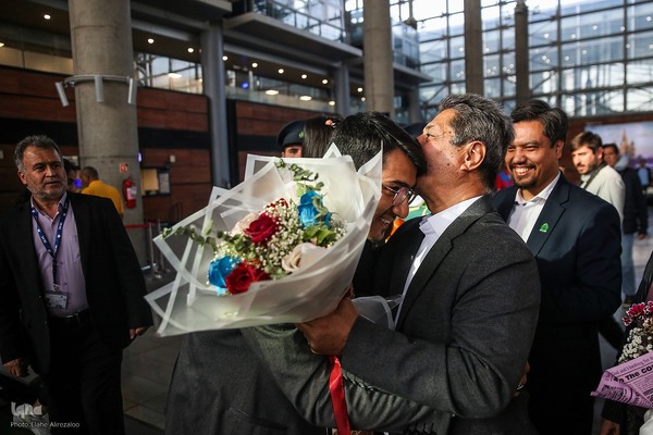 Photos: Flowers and Applause as Qari Abdollahi Arrives Home from Moscow