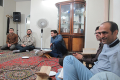با رسیدن زمان اذان مغرب، اعضای حاضر در جلسه، نماز را به جماعت اقامه کردند و بعد از نماز نیز جلسه ادامه پیدا کرد.