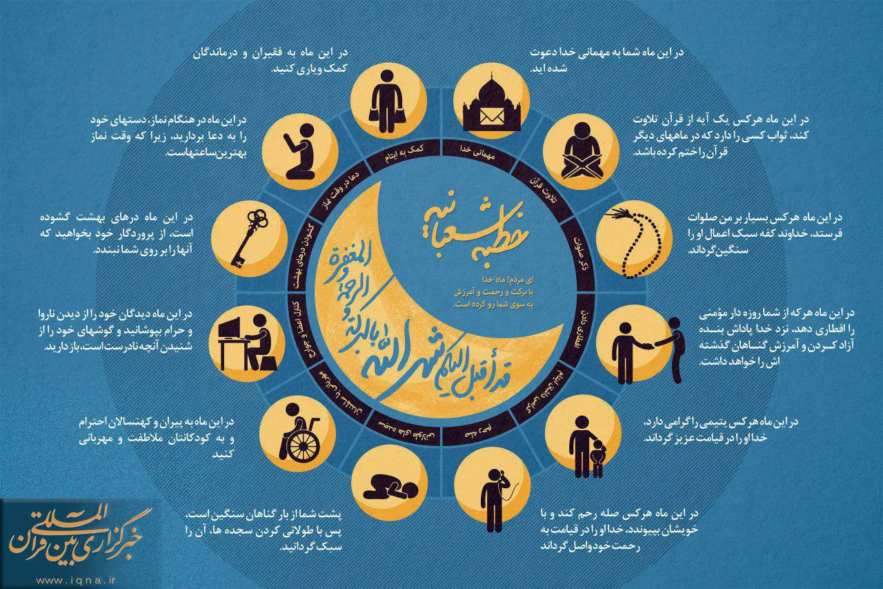 فرازی از خطبه شعبانیه: ای مردم! ماه خدا با برکت و رحمت و آمرزش به سوی شما رو کرده است.