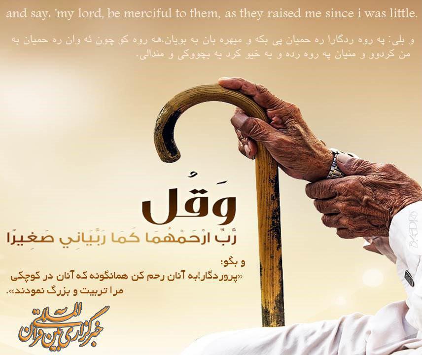 وَ قُلْ رَبِّ ارْحَمْهُما کما رَبَّیانی صَغیراً خداوند در این آیه که درباره پدر و مادر است، می فرماید که تنها به رحمت و مهربانی خود اکتفا نکن؛ بلکه برای آنان، رحمت واسعه الهی را بخواه و بگو: پروردگارا! همان گونه که آنها مرا در کودکی تربیت کردند، به آنان رحم و عطوفت خویش را فرو فرست.