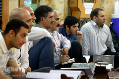 در این جلسه صمیمی، حاضران به نوبت یک صفحه از جزء هفدهم قرآن کریم را تلاوت کردند و خدامحسینی، نکات تفسیری آیات را بیان کرد. خدام حسینی با استناد به آیه 10 سوره انبیاء «لَقَدْ أَنزَلْنَا إِلَيْكُمْ كِتَابًا فِيهِ ذِكْرُكُمْ ۖ أَفَلَا تَعْقِلُونَ» گفت: تربیت قرآنی و ارتباط با قرآن و مسجد و نماز و روزه، جریان جان انسان را مثل آب جاری پاککننده متصل نگه میدارد. سپس با قرائت آیه 24 سوره انبیاء «أَمِ اتَّخَذُوا مِن دُونِهِ آلِهَةً ۖ قُلْ هَاتُوا بُرْهَانَكُمْ ۖ هَٰذَا ذِكْرُ مَن مَّعِيَ وَذِكْرُ مَن قَبْلِي ۗ بَلْ أَكْثَرُهُمْ لَا يَعْلَمُونَ الْحَقَّ ۖ فَهُم مُّعْرِضُونَ» گفت: در این قرآن( پیام خدا)، جریان شما و همه کسانی که قبل از شما بوده است، آمده است. برهان یعنی دلیل و نور که طرف مقابل را مبهوت میکند. در مقابل برهان فقط میتوانند مسخره و استهزا کنند. هرکس غیر از خدا را بخواند، برهانی ندارد.