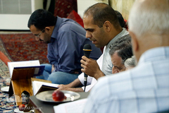 در جلسه شب گذشته مسعود سیافزاده، قاری ممتاز کشورمان، مهمان این جلسه بود کسی که در سفر تبلیغی ماه مبارک رمضان در غالب کاروان قرآنی «سفیران نور»، همراه با حسین رستمی، به تلاوت در محافل قرآنی استان لرستان، پلدختر، دلفان، سلسله، دوره چگنی، درود، ازنا، خرمآباد و کوهدشت طی روزهای 13 و 14 خردادماه به تلاوت مجلسی آیاتی از کلام الله مجید پرداخته بودند که با استقبال پرشور مردم این استان روبرو شد. این قاری ممتاز، نیز از ادامه درس جلسه به تلاوت آیاتی از کلامالله مجید پرداخت و مورد تشویق حاضران در جلسه قرار گرفت.