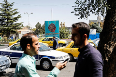 مجید امانی و نوید فارسی که هر دو راننده تاکسی هستند، بیرون ماشین منتظر مسافر ایستاده و هر لحظه سرشان را به سمتی می چرخانند تا شاید مسافری پیدا کنند.
