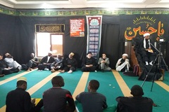 در بخشی از مراسم نوحه فارسی و عربی توسط یکی از طلاب حوزه امام صادق(ع) اجرا شد.