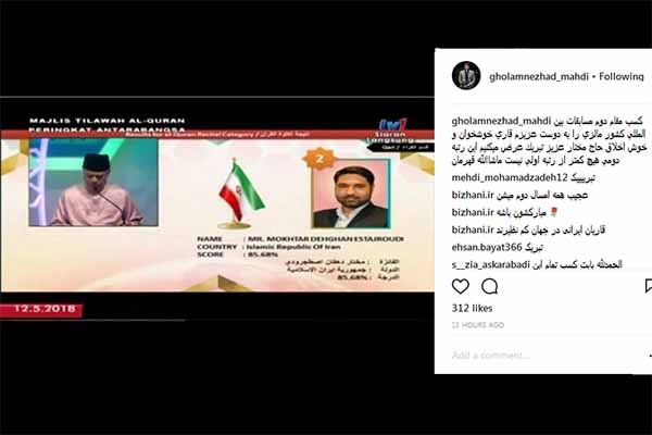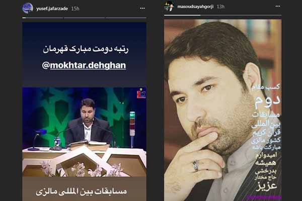 حمیدرضا احمدیوفا، مسعود سیاحگرجی، حسین شریفیان، مهدی غلامنژاد، سعید پرویزی، سید مصطفی حسینی، هادی موحدی امین، علیرضا رضایی، حبیب صداقت، مهدی فروغی، ابراهیم فلاح تبسمچهره، یوسف جعفرزاده، طه کبیری، امید حسینینژاد و ... از جمله قاریانی بودند که در فضای مجازی تبریک گفتند.