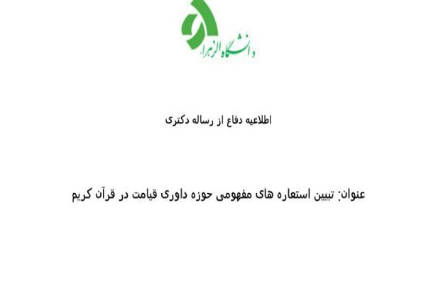 به گزارش ایکنا؛ رساله دکتری با عنوان «تبیین استعارههای مفهومی حوزه داوری قیامت در قرآن کریم» و به راهنمایی فتحیه فتاحیزاده، استاد گروه علوم قرآن و حدیث دانشگاه الزهرا(س) و آزیتا افراشی، دانشیار پژوهشگاه علوم انسانی و مطالعان فرهنگی و به قلم فریده امینی دانشجوی مقطع دکترای علوم قرآن و حدیث دفاع خواهد شد.
