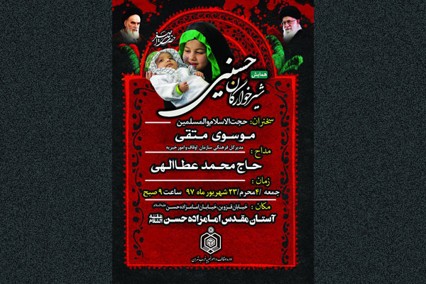 در این مراسم که روز جمعه، 23 شهریورماه همزمان با چهارمین روز از ماه محرم، از ساعت 9 برگزار خواهد شد، حجتالاسلاموالمسلمین موسوی متقی، مدیرکل فرهنگی سازمان اوقاف و امور خیریه سخنرانی میکند و در ادامه محمد عطاالهی به مدیحهسرایی میپردازد.