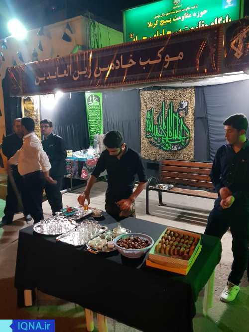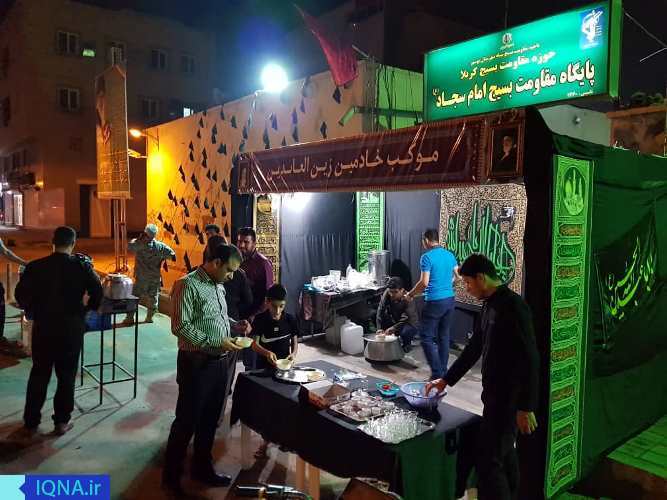 گفتنی است: موکب خادمان حسینی بسیج امام سجاد(ع) واقع در ورودی جنوبی خیابان کارگر هر شب بعد از نماز مغرب و عشاء از بیش از 2 هزار نفر مشتاقان و محبان مجالس سیدالشهدا(ع) در این سامانه فرهنگی و صلواتی پذیرایی میکند.