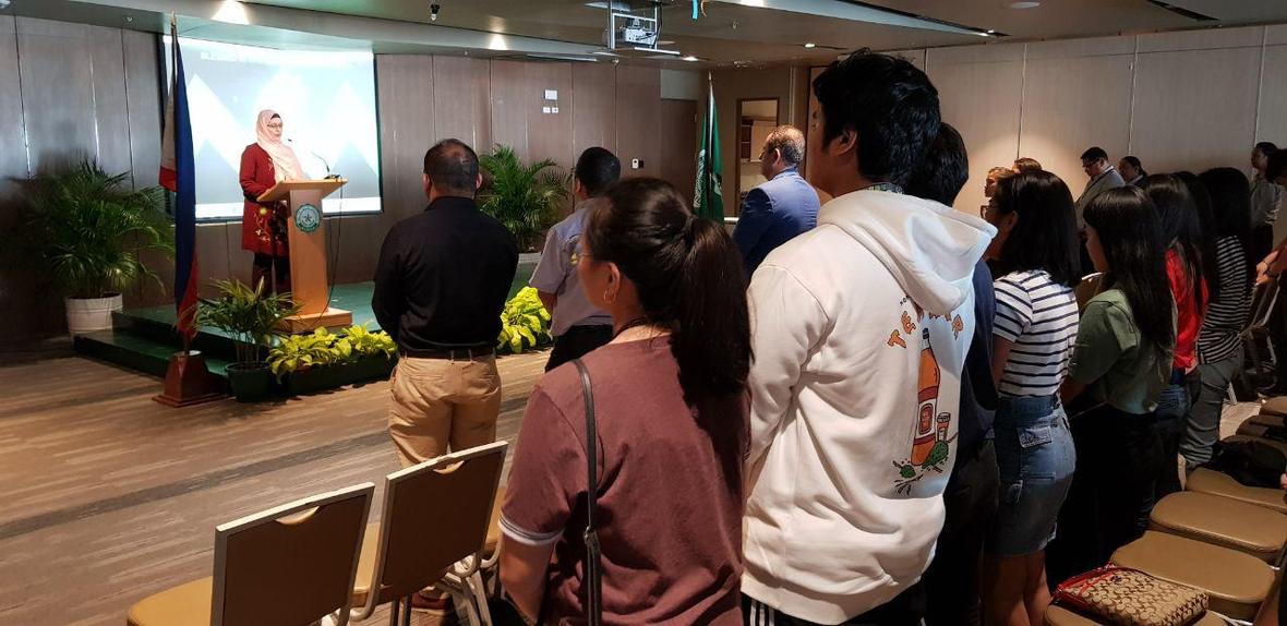 در مراسم افتتاحیه این نشست که محمد جعفری ملک، رایزن فرهنگی ایران در فیلیپین، خانم «فریتزیه یان دِوِرا Fritzie Ian De Vera »، معاون دانشگاه دلاسال، خانم آمنه رسول، رئیس مرکز اسلام و دموکراسی دانشگاه دولتی فیلیپین و مسئولان نهادها و مراکز دینی و سازمانهای مردمی حضور داشتند، تندیس تقوی هفت آیه از قرآن را برای حاضران قرائت کرد.