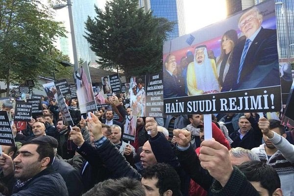 به گزارش ایکنا به نقل از پایگاه خبری النشره؛ شمار زیادی از مردم ترکیه امروز (یکشنبه) در برابر کنسولگری عربستان در استانبول تظاهرات کردند. تظاهرات‌کنندگان با در دست داشتن پلاکاردهایی در مخالفت با عربستان خواستار توقف جنگ در یمن شدند. انتهای پیام