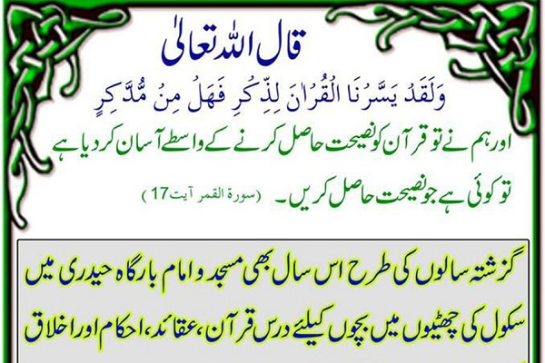 به گزارش ایکنا از پاکستان؛ اوقات فراغت فرصت خوبی برای دانشآموزان پاکستان به منظور یادگیری تجوید قرآن و قرائت قرآن است و در همین راستا دوره آموزش قرآن در حسینیه «حیدری» کویته برگزار میشود.
