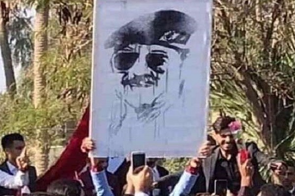دانشجویان دانشگاه الانبار یک نقاشی از عکس صدام حسین را در جشن دانشکده کشاورزی در دست گرفتند و آن را بالا بردند.