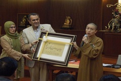 در ادامه مراسم، تابلوی خوشنویسی شده تندیس تقوی که با همکاری خانم «جو آیورا ایمبونگ ماری ایمبونگ»( Jo Aurea Imbong-Mary M. Imbong)، نقاش، وکیل دادگستری و عضو یونی هارمونی مانیل (گروه گفتگوی ادیان) فیلیپین نقاشی شده بود، به رهبر بوداییان این کشور اهدا شد. در این تابلو جمله «سه چیز هیچ وقت پنهان نمیماند، خورشید، ماه و حقیقت» به دو زبان فارسی و انگلیسی خوشنویسی شده بود.
