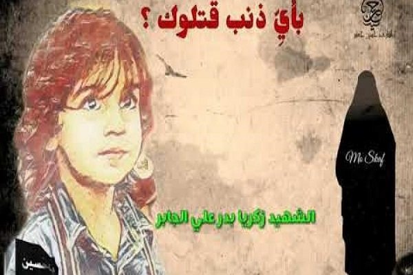 از آنجایی که خون شهید شیرخوار کربلا، هنوز در جوش و خروش خونخواهی است، امروز زکریای شهید، با خون خود ، برائت از سردمداران کودک کش وهابیت را در گوش جهانیان فریاد می کند.