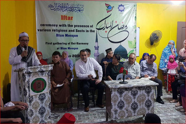 برنامه با قرائت قرآن استاد عبدالمنعم سلیمان قاری بینالمللی قرآن کریم از فیلیپین در سالن دارالقرآن مسجد آبی آغاز شد و سپس سرهنگ «اِبرا ماکس سر»، رئیس امور دینی مسلمانان واحد پلیس این کشور، به عنوان مجری برنامه مقدم اعضای «یونی هارمونی» و برادران و خواهران روزهدار مسلمان به نشست گفتوگوی میان ادیان را گرامی داشت و حضور فعال رایزنی فرهنگی را در نشستهای دورهای گفتوگوی ادیان در مانیل ستود.
