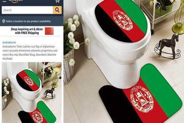 در این تصویر نمایی از کف‌پوش و روانداز سرویس بهداشتی فرنگی نشان داده می‌شود که عکس پرچم افغانستان بر روی آن قرار دارد. این محصول با عکس یاد شده برای فروش روی سایت آمازون قرار داده شده بود.