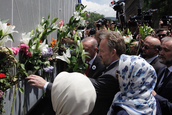 در اين مراسم كه علاوه بر رجب طیب اردوغان رئیس جمهور ترکیه، شفیق جعفرویچ و ژلیکو کمشیچ اعضای مسلمان و کروات شوراي رياست جمهوري، باقر عزت بگوویچ رئیس پارلمان اقوام، حسین کاوازوویچ رئيس العلماء، چاووش اوغلو وزیر خارجه ترکیه و ديگر مقامات بوسني و هرزگوين حضور داشتند، حاضران با قرائت فاتحه و نثار گل با پيكرهاي اين شهيدان وداع كردند.