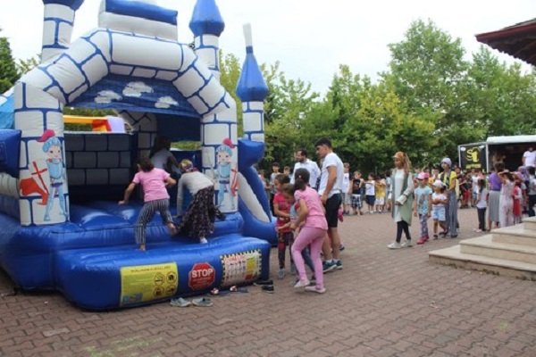 او با کمک سرمایهگذاران یک قلعه بادی در صحن مسجد نصب کرده و برای کودکان تئاتر اجرا میکند. همچنین با خوراکی و شیرینی از کودکان پذیرایی میکند.