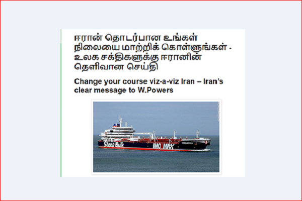 به گزارش ایکنا به نقل از سازمان فرهنگ و ارتباطات اسلامی؛ وبلاگ تامیل زبان «تودو» (thoothu)، مقالهای را با عنوان «پیام واضح ایران به قدرتهای جهانی؛ موضع خود را در قبال ایران تغییر دهید» منتشر کرد.