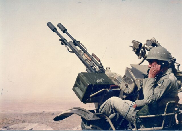 برابرجدول وضعیت تجهیزات پدافندهوایی در سال ۱۳۵۹، پدافند هوایی نیروی زمینی دارای تجهیزاتی همچون توپهای ضدهوایی در کالیبر ۱۴/۵ میلیمتری، ۲۳ میلیمتری، ۵۷ میلیمتری، موشکهای دوش پرتاب سام ۷، سامانه پدافندهوایی شلیکا، پدافند هوایی نیروی هوایی دارای تجهیزات پدافندهوایی همچون توپهای ضدهوایی ۲۳ میلیمتری، ۳۵ میلیمتری، سامانه راداری اورلیکن، سامانه راداری موشکی راپیر، سامانه راداری موشکی هاوک، نیروی دریایی دارای سامانه راداری موشکی تایگرکت و ناوهای مجهز به موشکهای سطح به هوا بود.