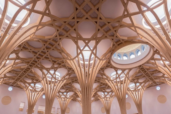 به نوشته این روزنامه، نخستین چیزی که در ورود به این مسجد جلب توجه میکند جنگلی از ستونهای درخت مانند است که از کف مسجد رو به بالا رفته و با شاخههایی پیچک مانند سقفی مواج را به وجود آوردهاند. این بنا یکی از شگفتآورترین سازههای امسال در انگلیس است.