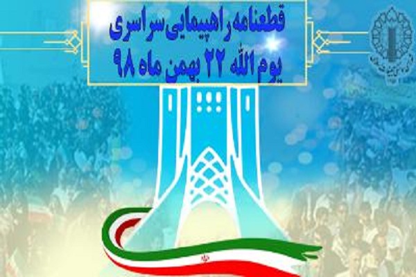 به گزارش ایکنا؛ متن کامل قطعنامه راهپیمایی سراسری یومالله ۲۲ بهمن سال 1398 به این شرح است:
