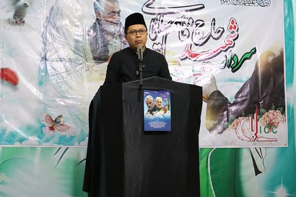 مراسم چهلمین روز شهادت سردار قاسم سلیمانی، فرمانده سپاه قدس، ابومهدی المهندس، نائب رئیس حشدالشعبی عراق و همرزمان آنها روز گذشته، 27 بهمن در مرکز اسلامی جاکارتا(ICC) برگزار شد.