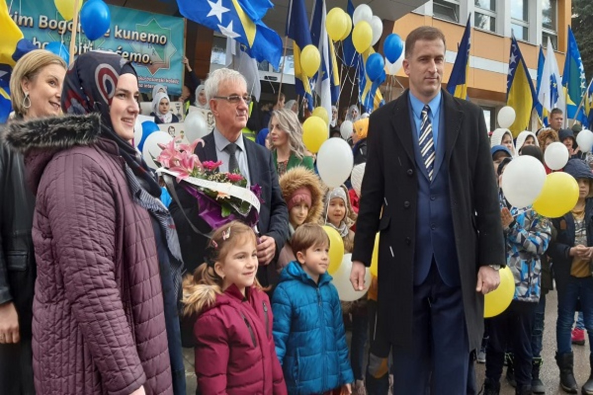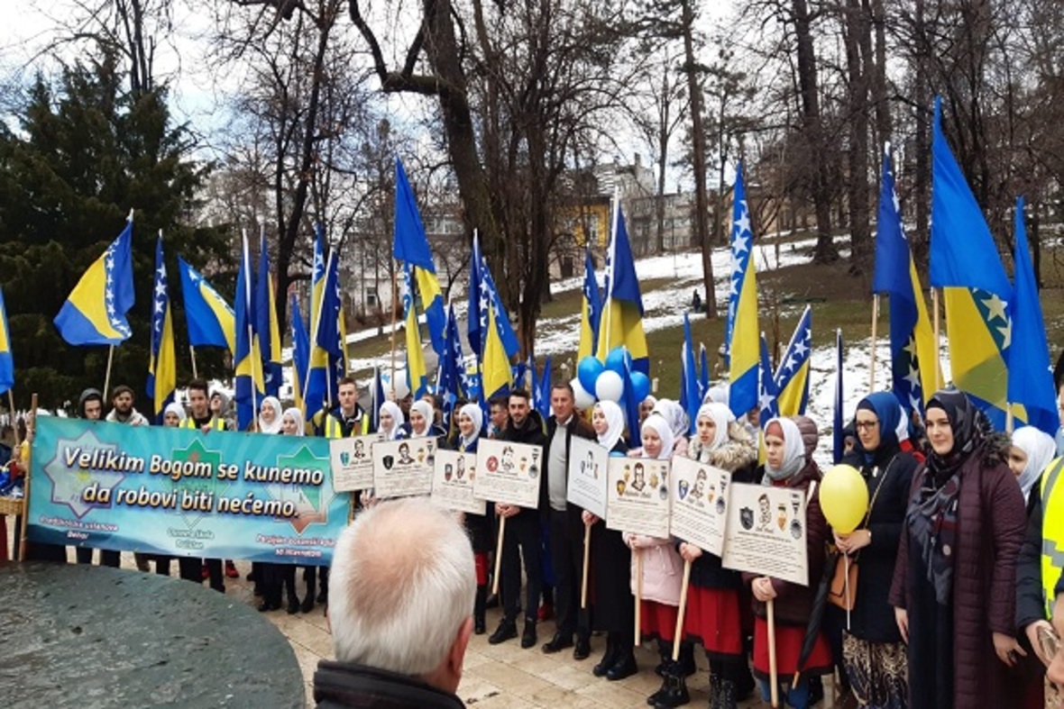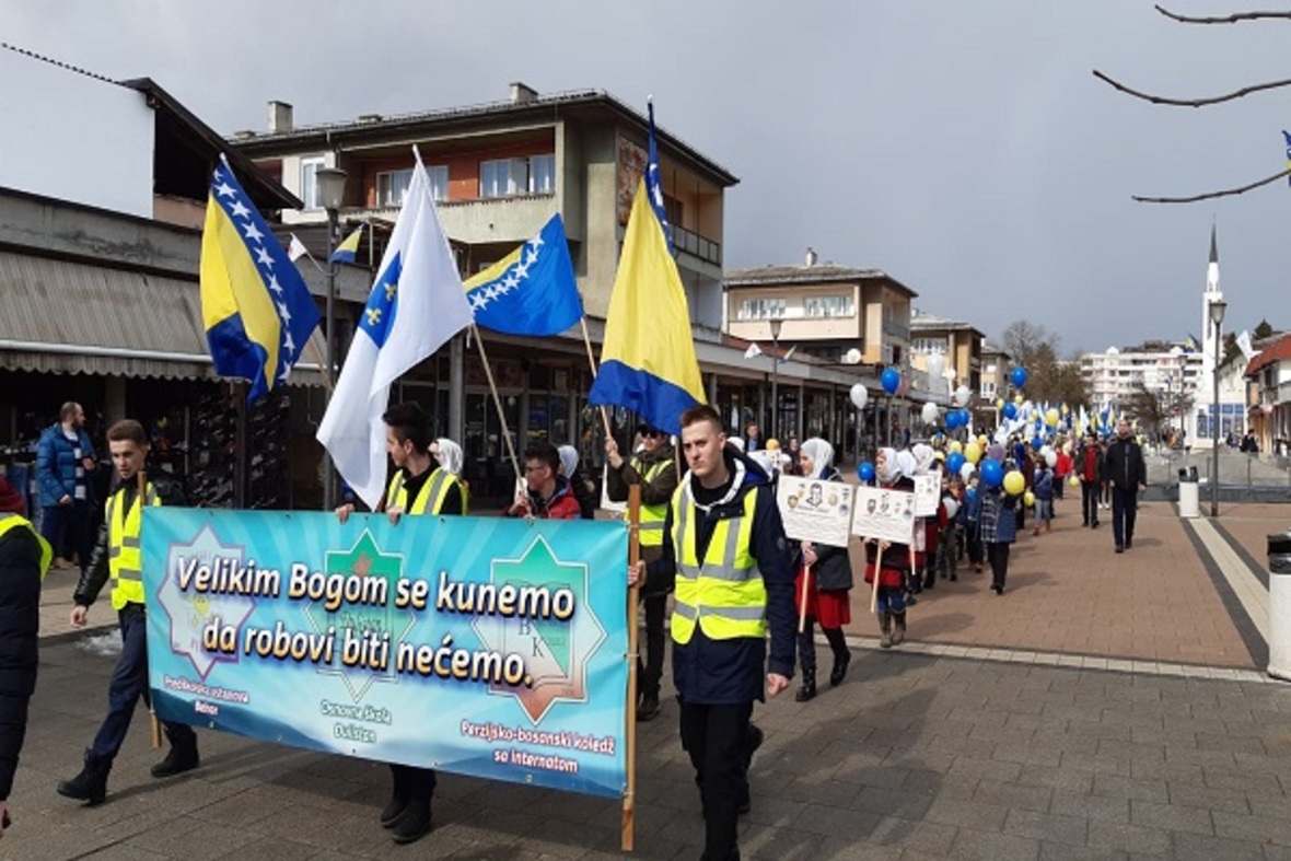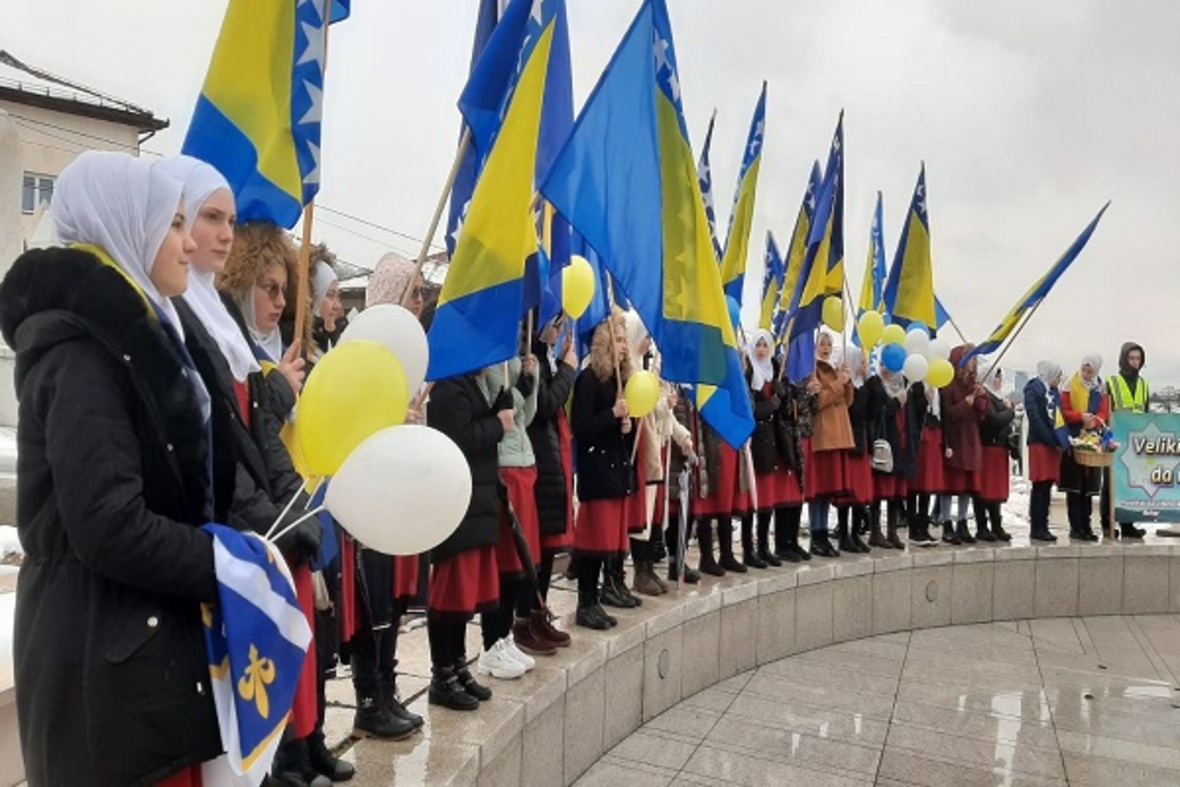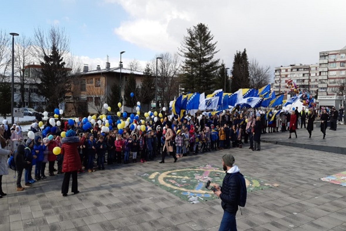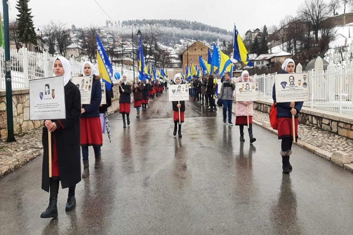 در ادامه ستونی از دانشآموزان با در دست داشتن پرچم بوسنی و هرزگوین به منظور گرامیداشت یاد و خاطره کودکان شهید این کشور در جنگ سارایوو در محل یادبود این شهدا حضور یافتند. آنها سپس به اقامه نماز جمعه پرداختند.