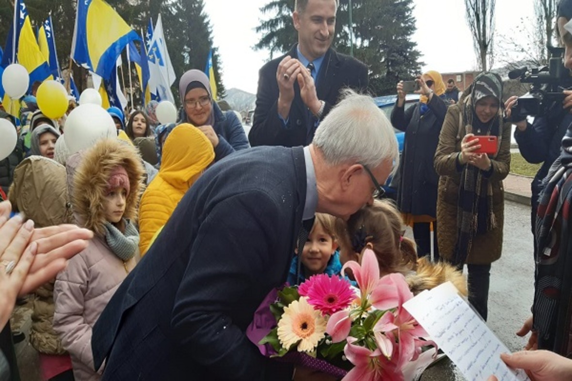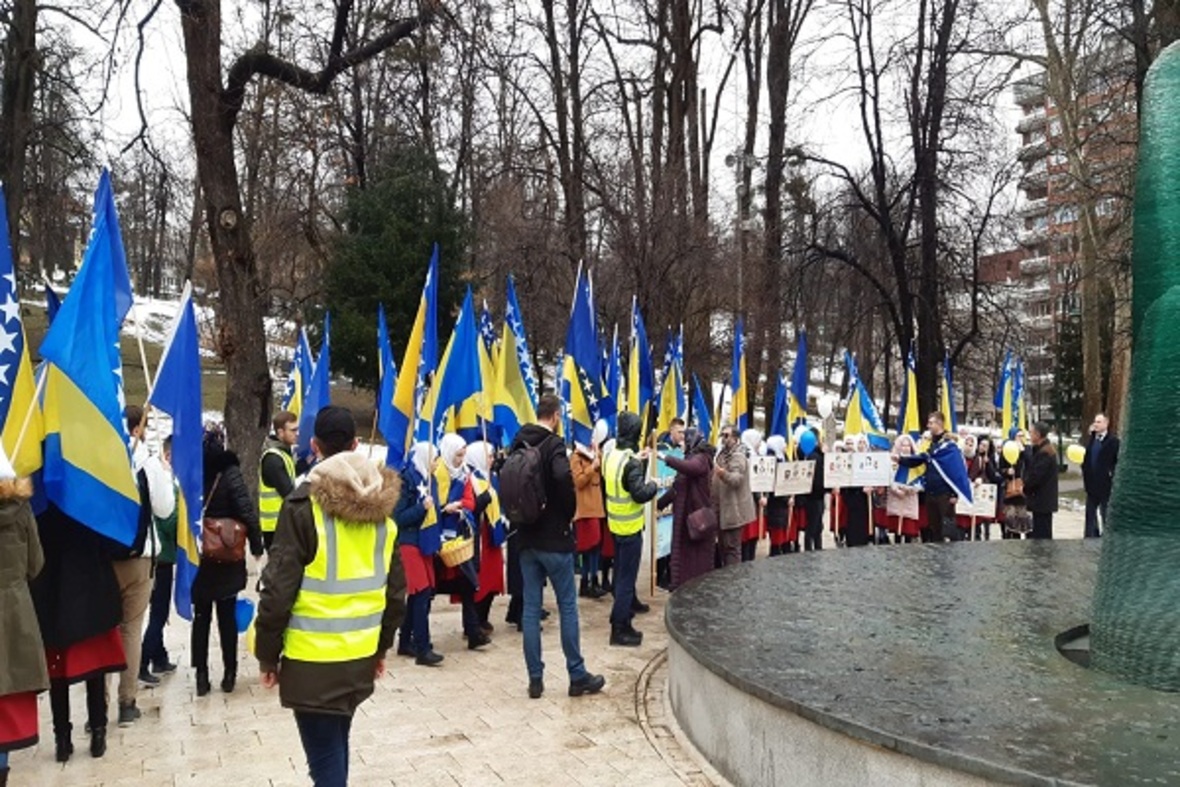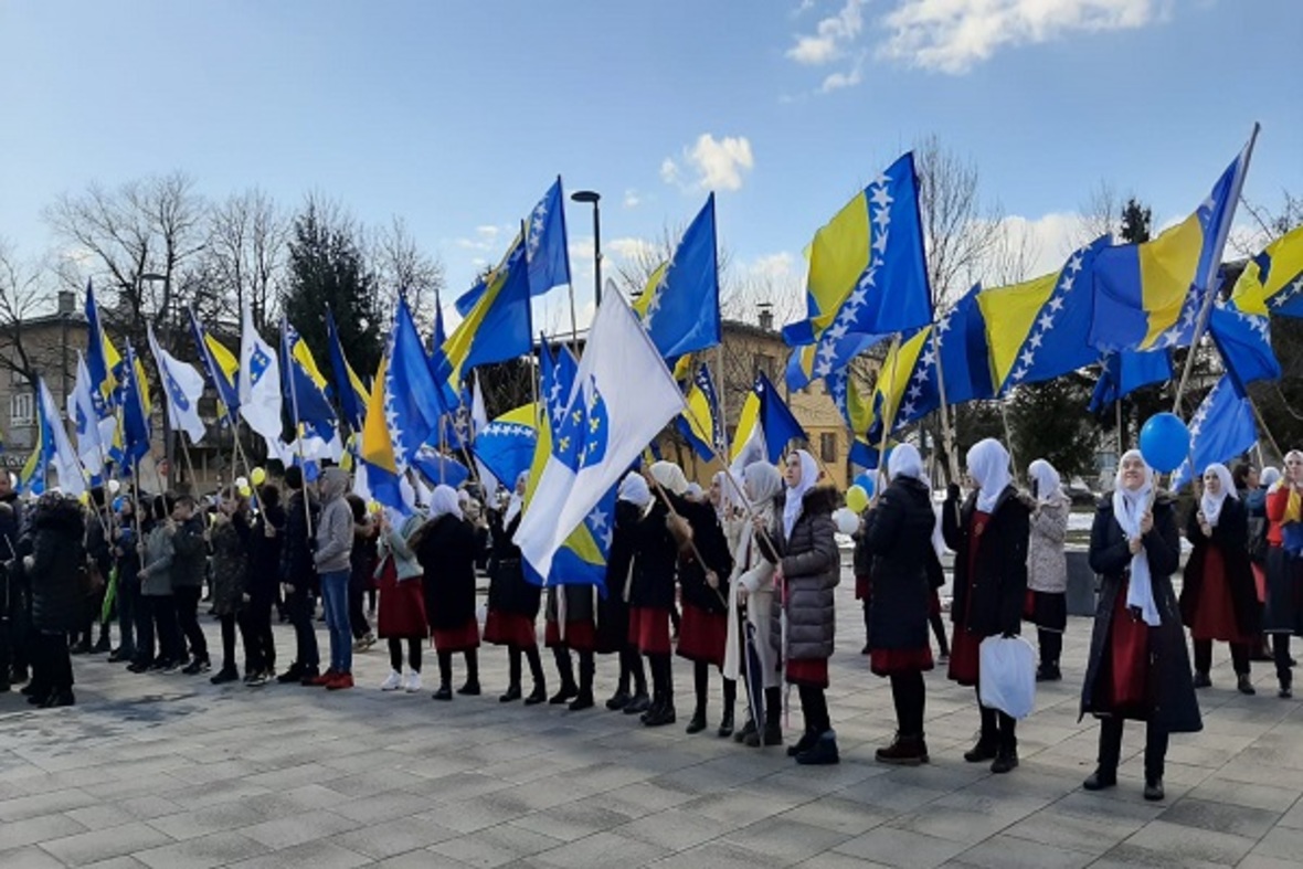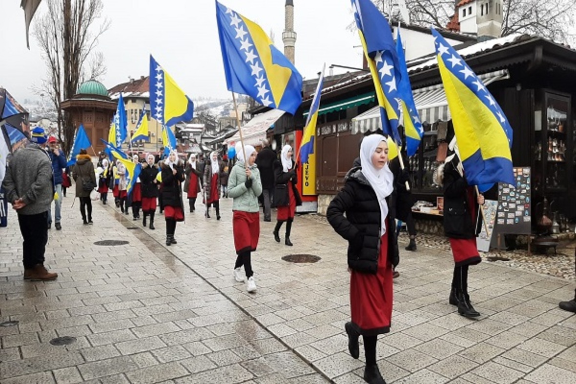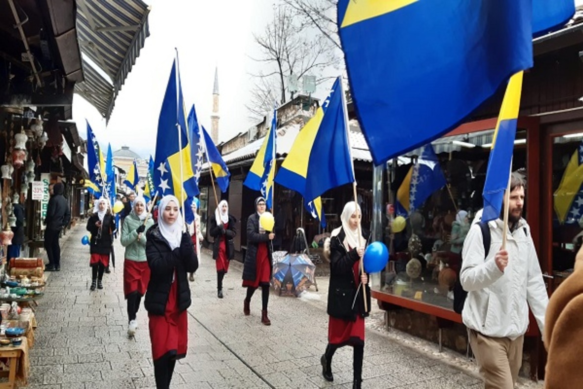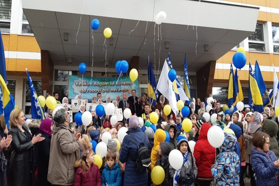 در ادامه ستونی از دانشآموزان با در دست داشتن پرچم بوسنی و هرزگوین به منظور گرامیداشت یاد و خاطره کودکان شهید این کشور در جنگ سارایوو در محل یادبود این شهدا حضور یافتند. آنها سپس به اقامه نماز جمعه پرداختند.