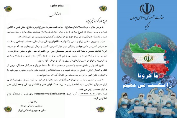 سفارت ایران در ژاپن برای جمع‌آوری کمک‌های نقدی و غیرنقدی این کشور برای بیماران کرونایی و کادر پزشکی ایران فراخوان داد.