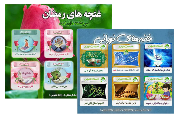 وی با اشاره به جزئیات برنامه «غنچههای رمضان»، اظهار کرد: تکریم حافظان قرآن شامل محفوظات جدید رده سنی زیر ۱۵ سال، ۱۰ صفحه و گروه سنی بالای ۱۵ سال یک جزء در ماه مبارک رمضان ، شناسایی و تکریم روزه اولیها، اجرای برنامه «30 قصه، 30 نقاشی قرآنی» همراه با مسابقه، تصحیح قرائت نماز جوانان و نوجوانان ویژه آقایان، آموزش نماز به کودکان و نوجوانان و ارسال فیلم یک دقیقهای به منظور شرکت در مسابقه و برگزاری مسابقه عکس رمضان از سفره افطار و عبادات لیالی قدر از بخشهای برنامه غنچههای رمضان است.