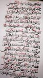 الاشقر ادامه داد: این مرد قرآن را با خط مغربی (مراکشی) قدیم و با رنگهایی ساخته شده به روش قدیم کتابت میکرد و با رنگها و نقش و نگارهای هندسی آن را میآراست و چندین بار به نگارش چنین قرآنهایی پرداخت، به طوری که گفته میشود بیش از صد بار قرآن را از حفظ نوشت و به بزرگان و علمای فعال در آموزش قرآن هدیه داد و بیشتر قرآنهایش را به شیوه «ورش عن نافع المدنی»(از روایتهای مرسوم در نگارش قرآن) کتابت میکرد.